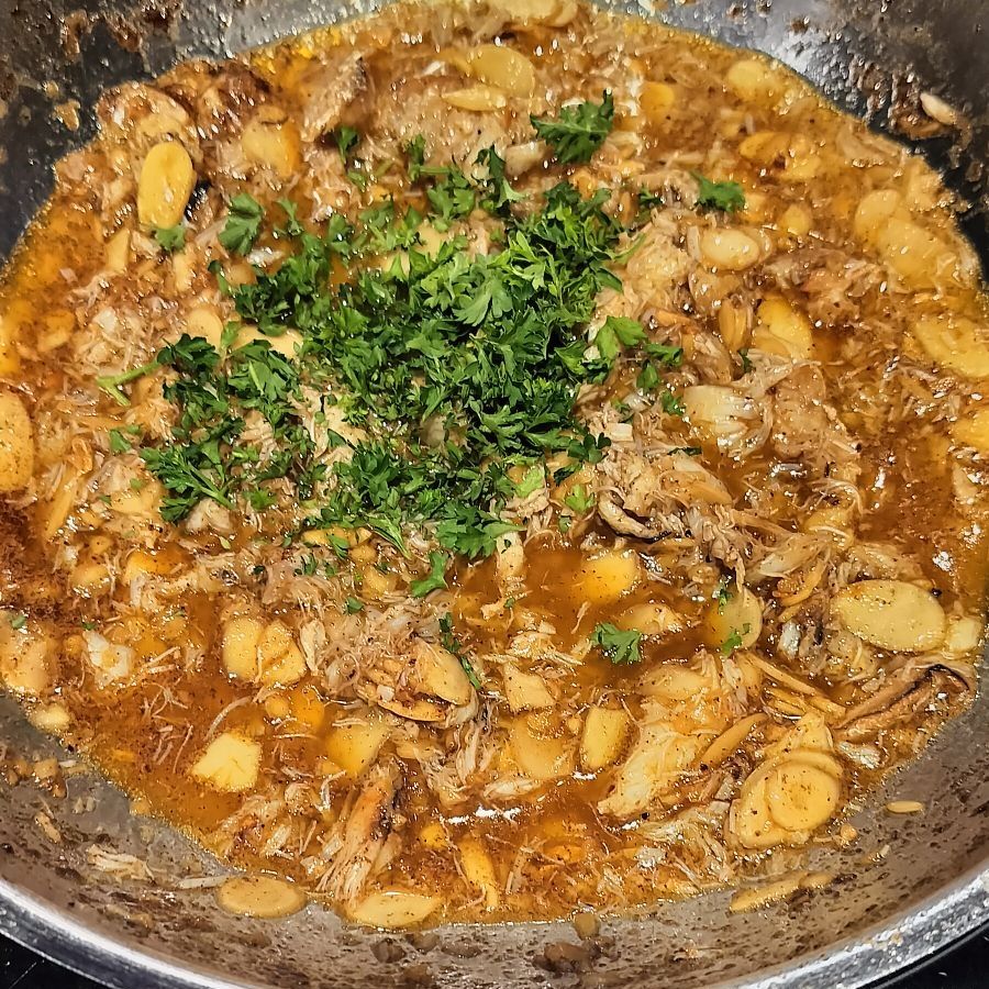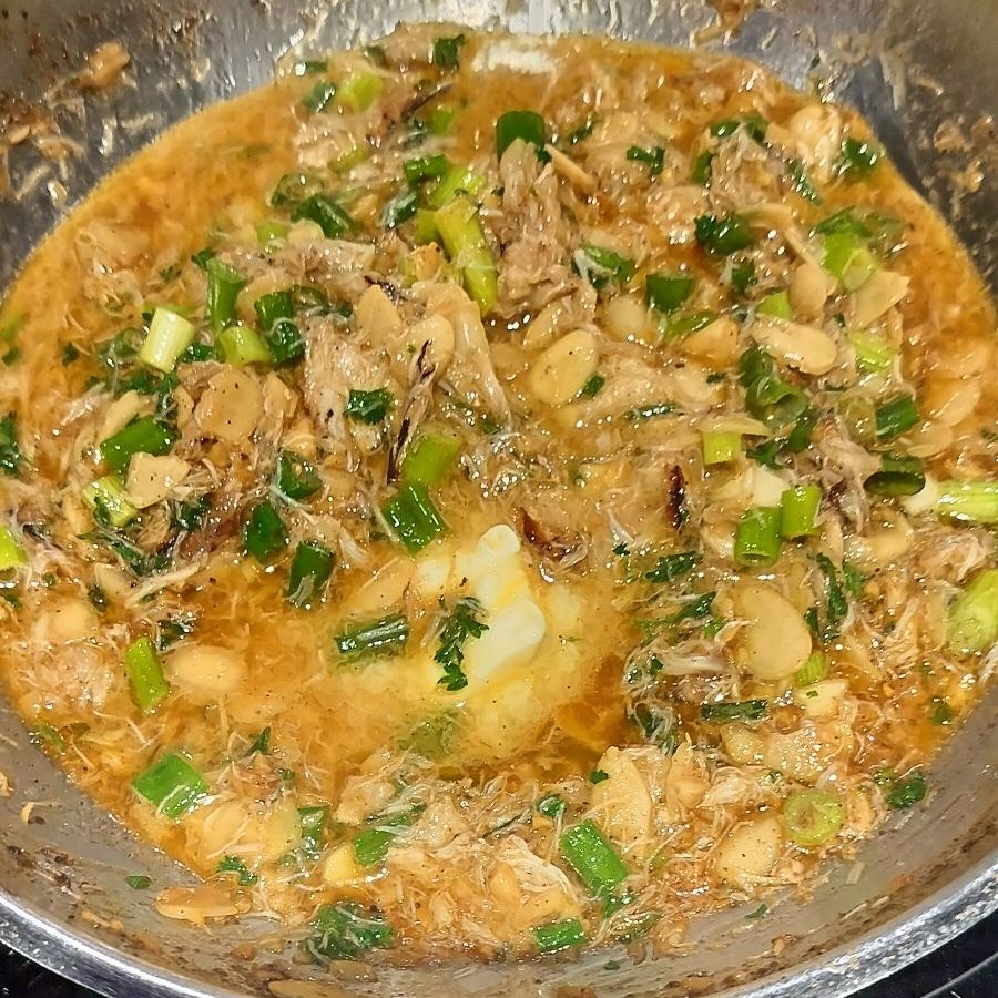 Almonds added to sauceCrab meatCrab meat and parsley addedMore butter and reduce the sauce
