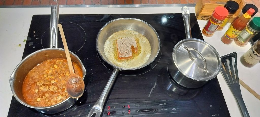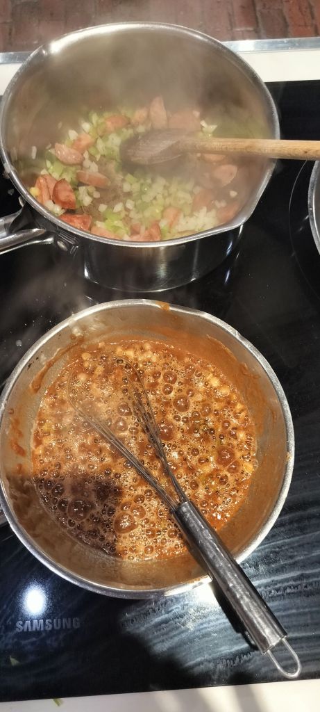 The first dish we prepared was a gumbo. I started lard melting into a pan, yes I said lard don’t question the method, which I then mixed in flour and stirred slowly until the flour cooked and became the color a milk chocolate.
