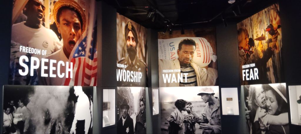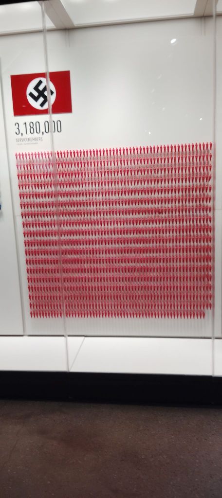 The Monument Men section has the best interactive screens. You can pick different paintings and learn when they were stolen by the Nazis, when/if they were recoved and their current location. A great experience.