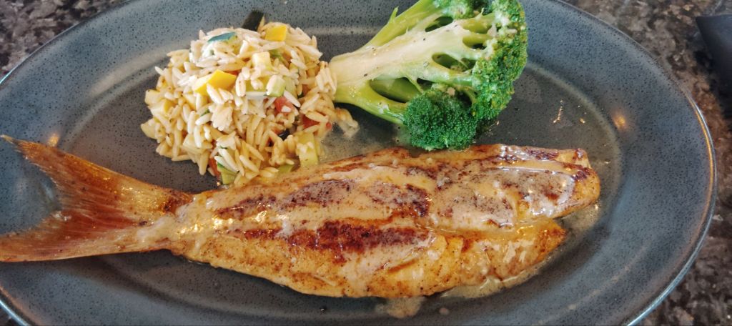 And here is my lunch cooked by my own hands at the directions of Chef Austin. Sorry not going to try to spell his last name, it started with an F and is very New Orleans. I may have put too much sauce on my fish, but I didn’t want it to go to waste.