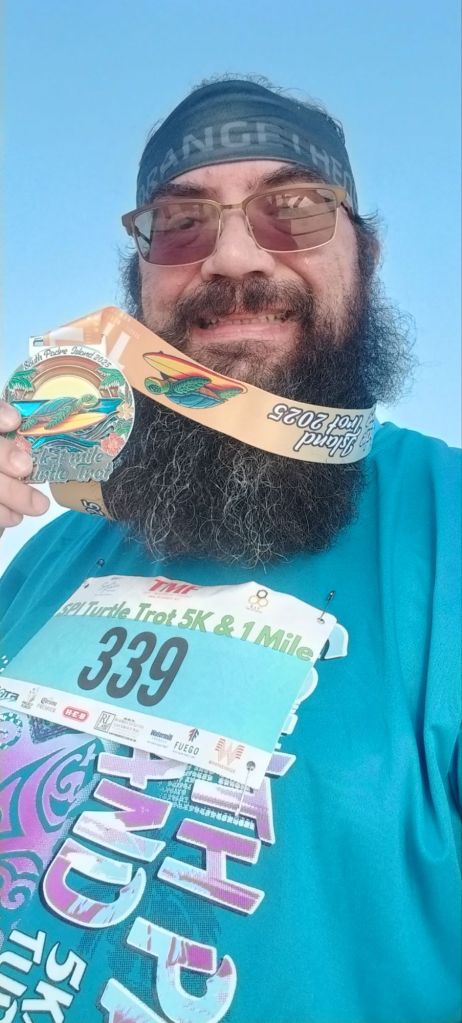 I am here again on South Padre Island running my 4th Turtle Trot 5k. Compared to my last 5k on October 31st, I was a bit slower by 40 seconds but still within my normal range.