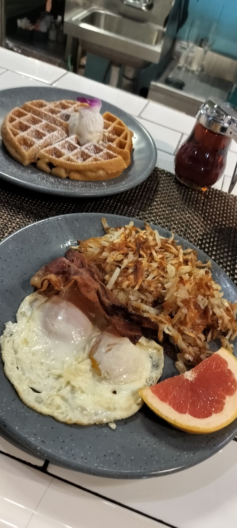 After the race this morning, I went to Josephine’s Kitchen on SPI. They have really good waffles and good coffee.