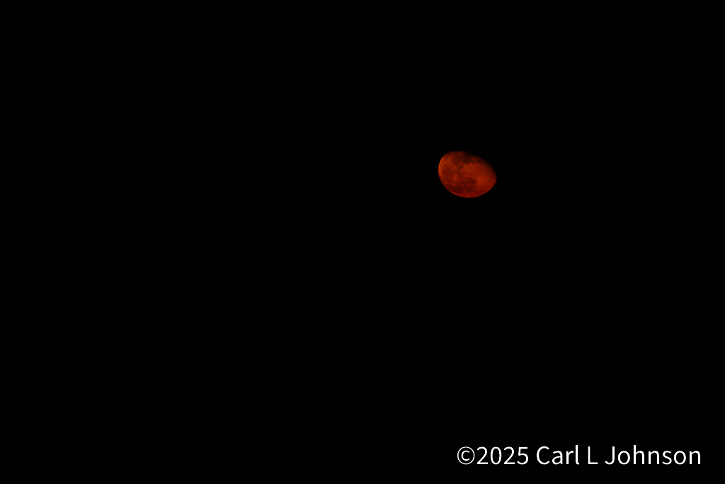 Setup my big camera to capture the moon rise on November 9, 2025. The moon rose further north on the Eastern horizon than I thought. My misconception was the moon and sun rise in similar locations.