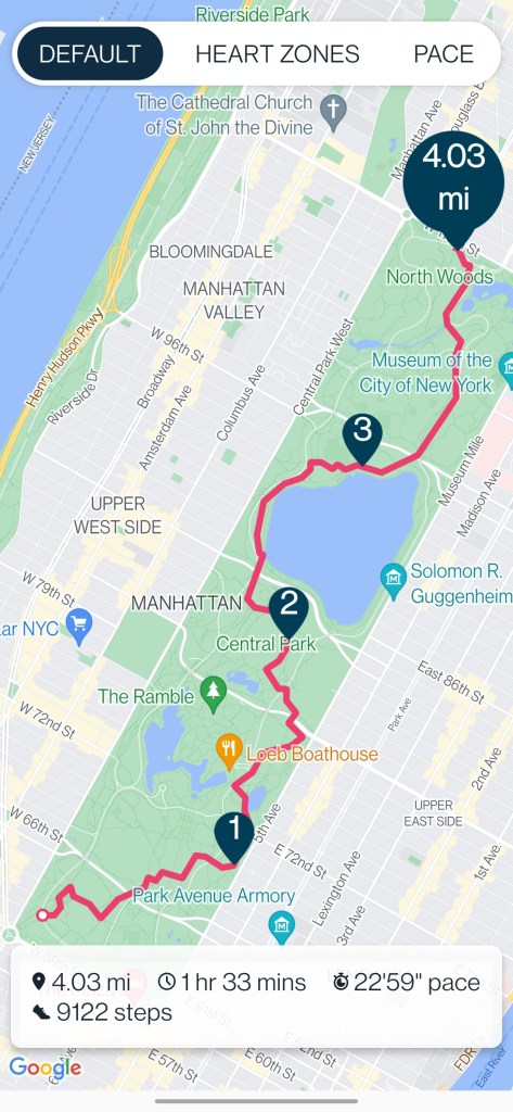Debating what to do once we get docked. Well, I ended up walking the length of Central Park with a few twists.